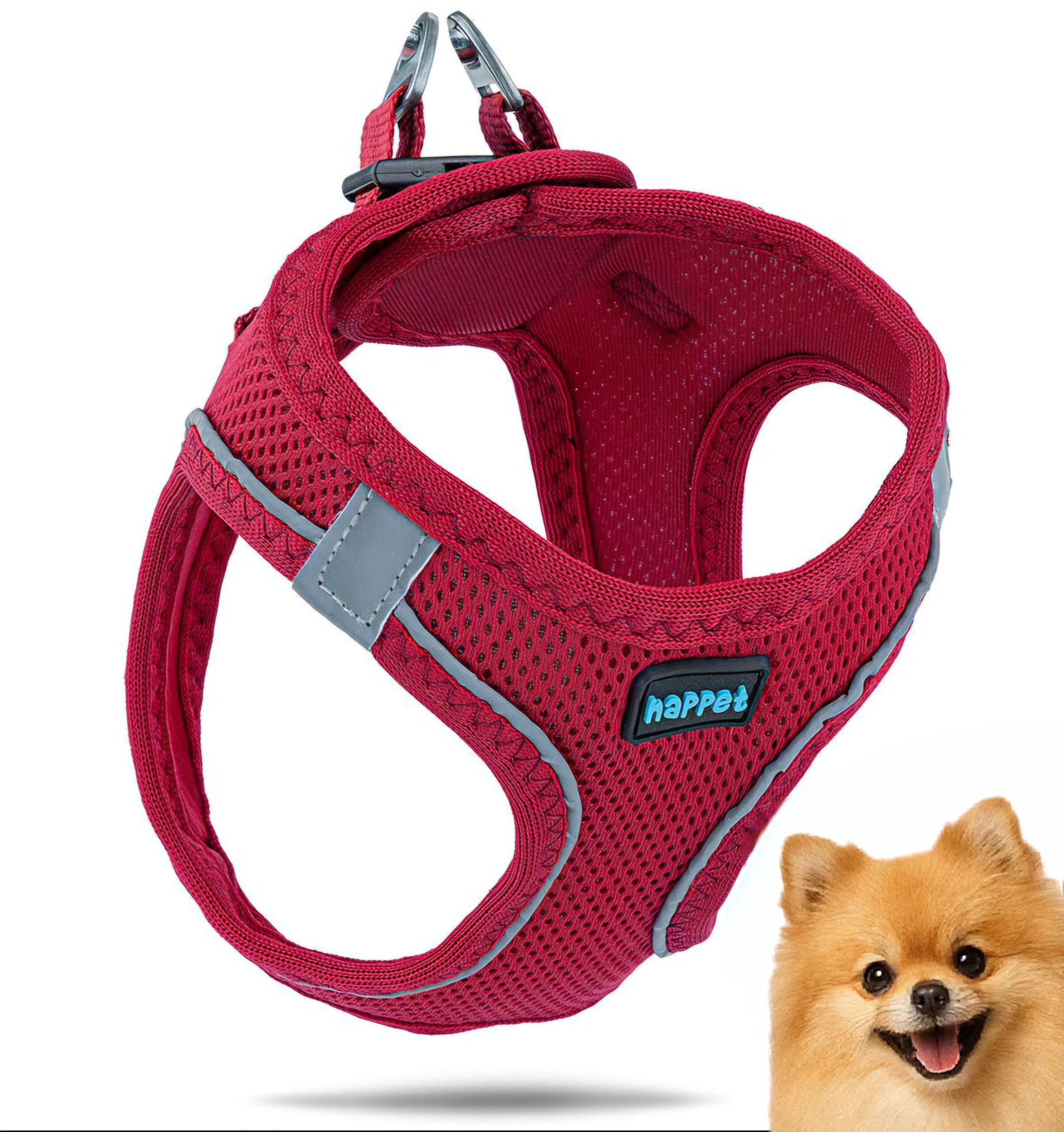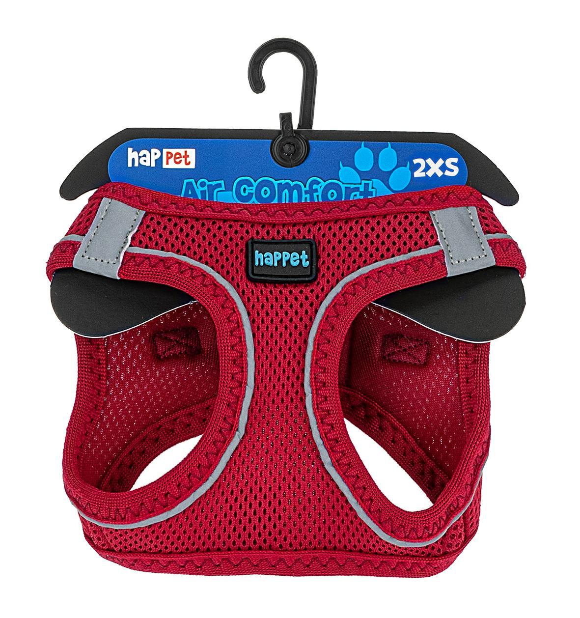 Szelki Air Comfort posiadają obręcz szyjną i piersiową z łączeniem na klatce piersiowej i plecach, zostały wykonane z solidnego, sztywnego materiału przepuszczającego powietrze, z odblaskowymi elementami. Zapinane są dwuetapowo, na plastikową klamrę oraz rzep.