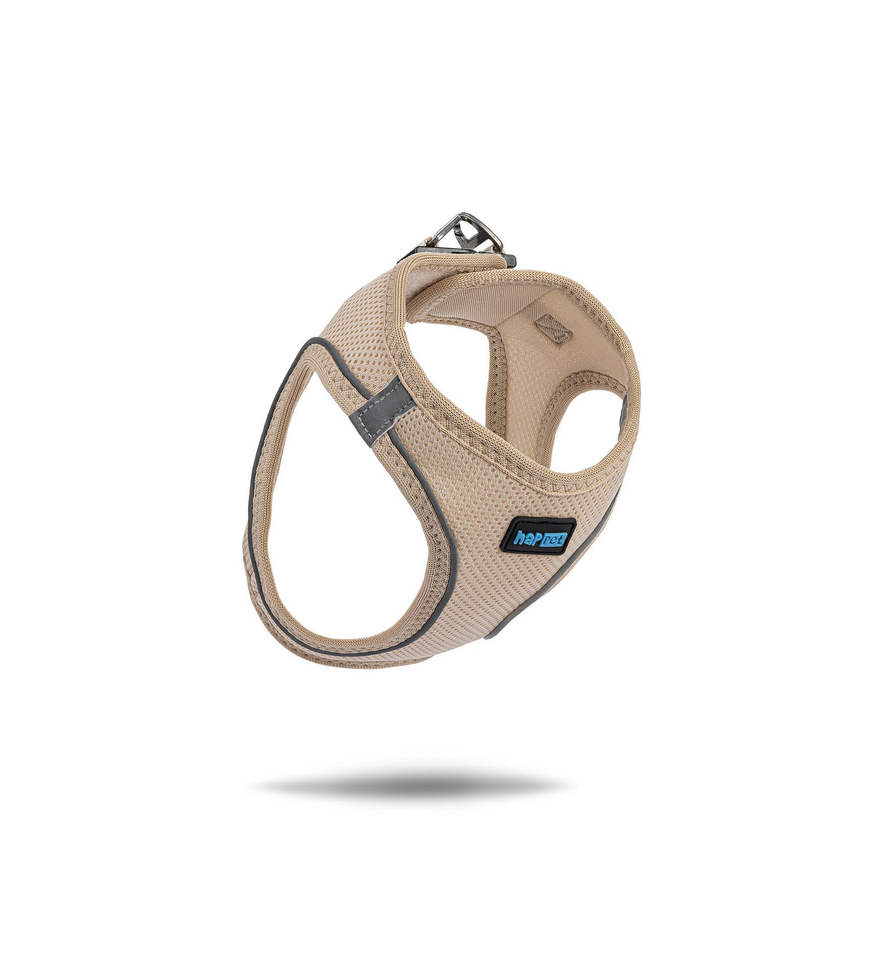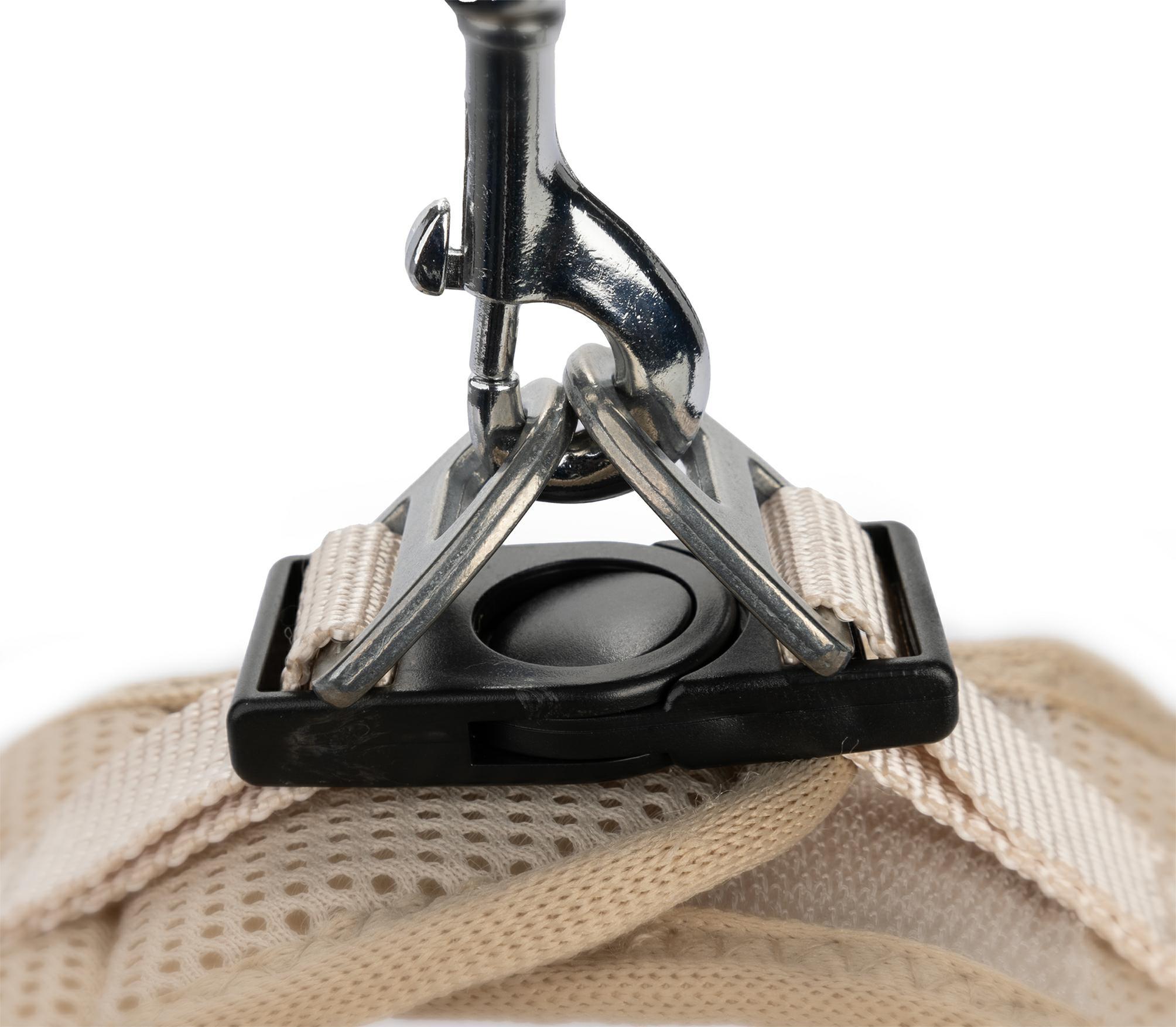 Szelki Air Comfort posiadają obręcz szyjną i piersiową z łączeniem na klatce piersiowej i plecach, zostały wykonane z solidnego, sztywnego materiału przepuszczającego powietrze, z odblaskowymi elementami. Zapinane są dwuetapowo, na plastikową klamrę oraz rzep.