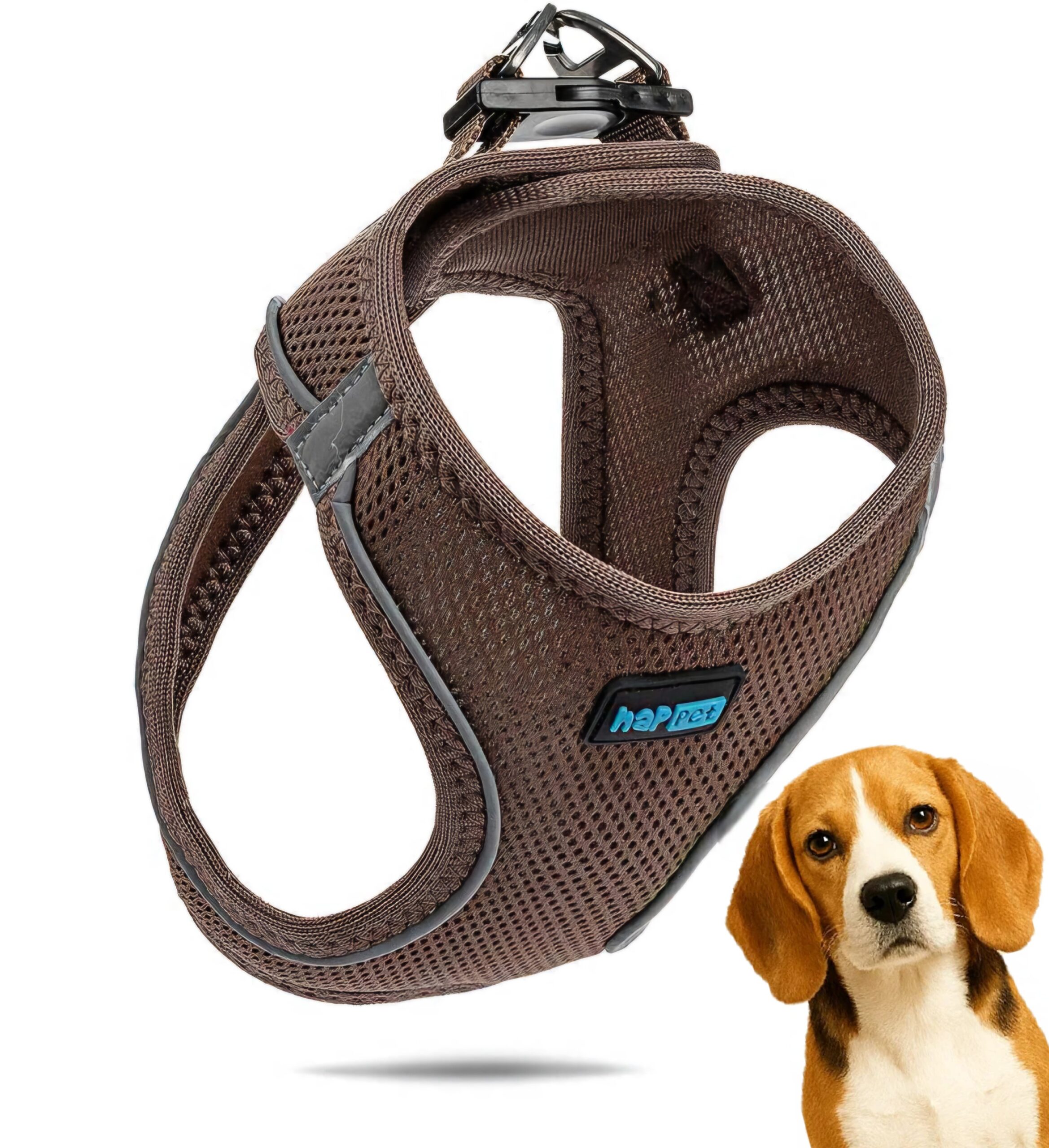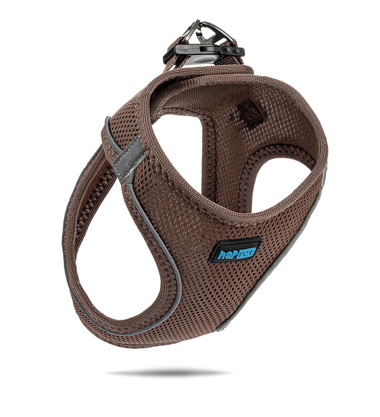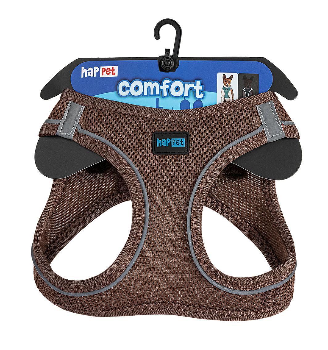Szelki Air Comfort posiadają obręcz szyjną i piersiową z łączeniem na klatce piersiowej i plecach, zostały wykonane z solidnego, sztywnego materiału przepuszczającego powietrze, z odblaskowymi elementami. Zapinane są dwuetapowo, na plastikową klamrę oraz rzep.