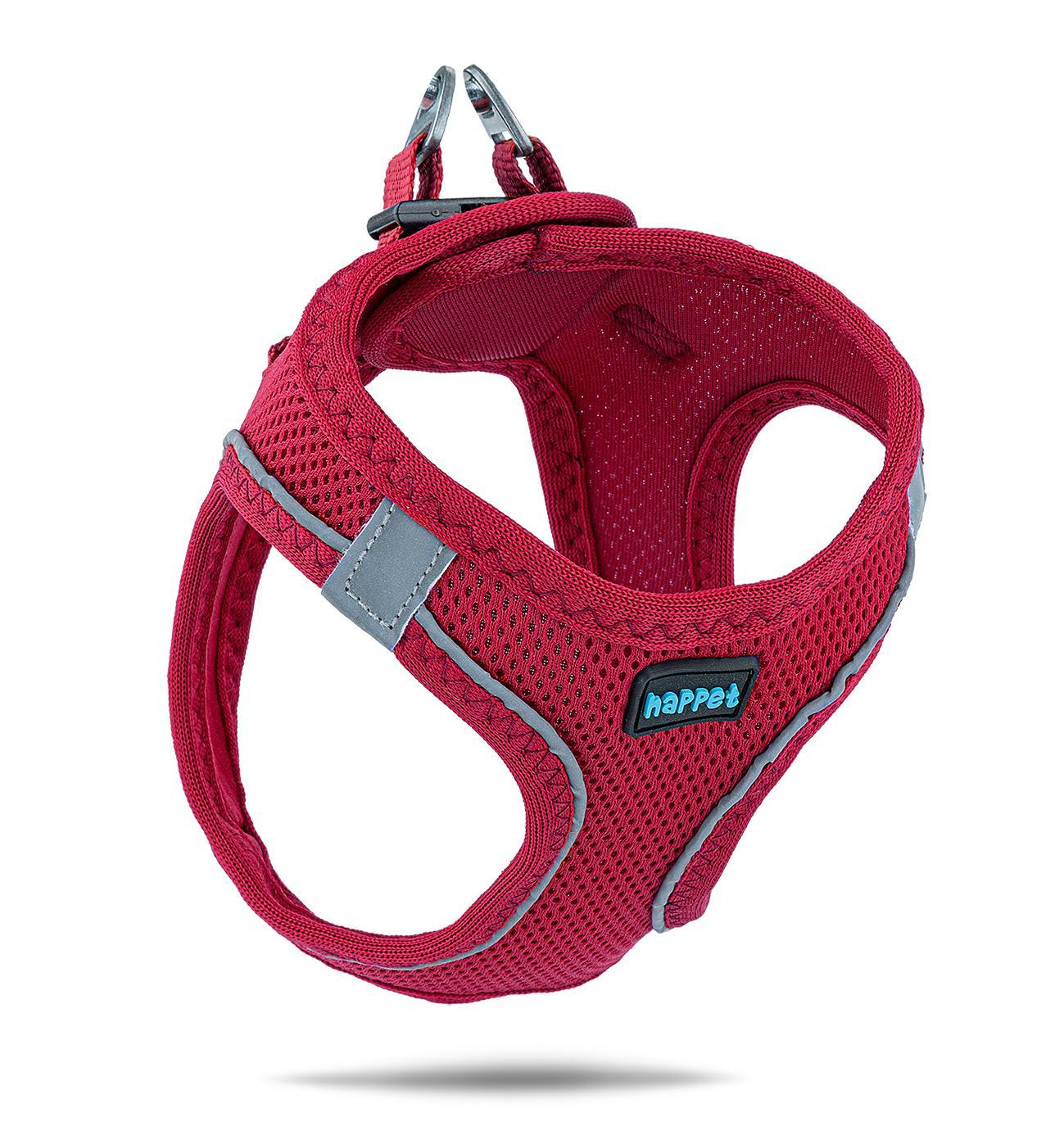 Szelki Air Comfort posiadają obręcz szyjną i piersiową z łączeniem na klatce piersiowej i plecach, zostały wykonane z solidnego, sztywnego materiału przepuszczającego powietrze, z odblaskowymi elementami. Zapinane są dwuetapowo, na plastikową klamrę oraz rzep.