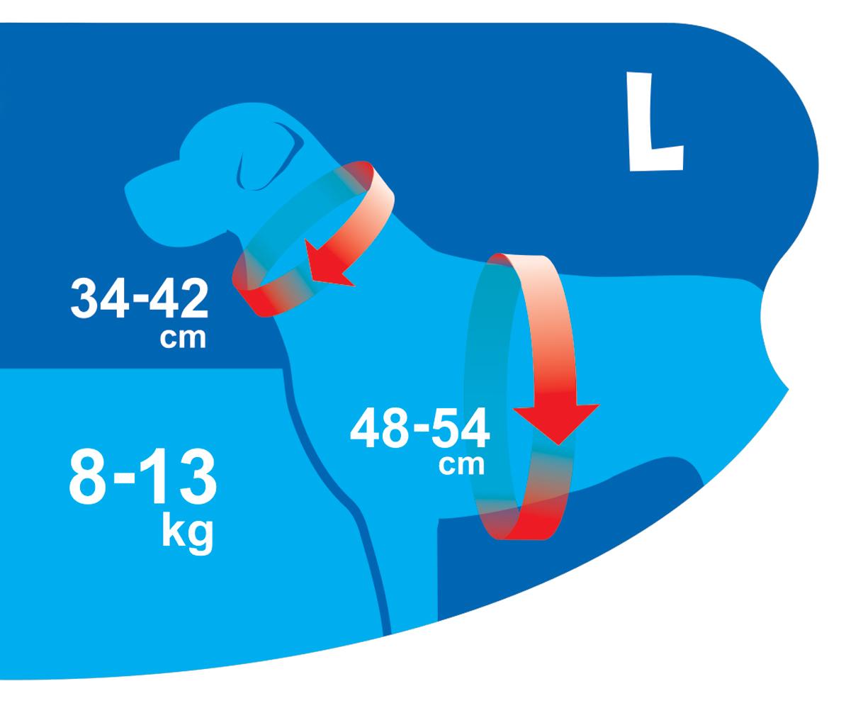 Szelki Air Comfort posiadają obręcz szyjną i piersiową z łączeniem na klatce piersiowej i plecach, zostały wykonane z solidnego, sztywnego materiału przepuszczającego powietrze, z odblaskowymi elementami. Zapinane są dwuetapowo, na plastikową klamrę oraz rzep.