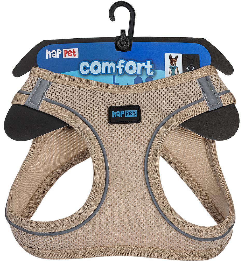 Szelki Air Comfort posiadają obręcz szyjną i piersiową z łączeniem na klatce piersiowej i plecach, zostały wykonane z solidnego, sztywnego materiału przepuszczającego powietrze, z odblaskowymi elementami. Zapinane są dwuetapowo, na plastikową klamrę oraz rzep.