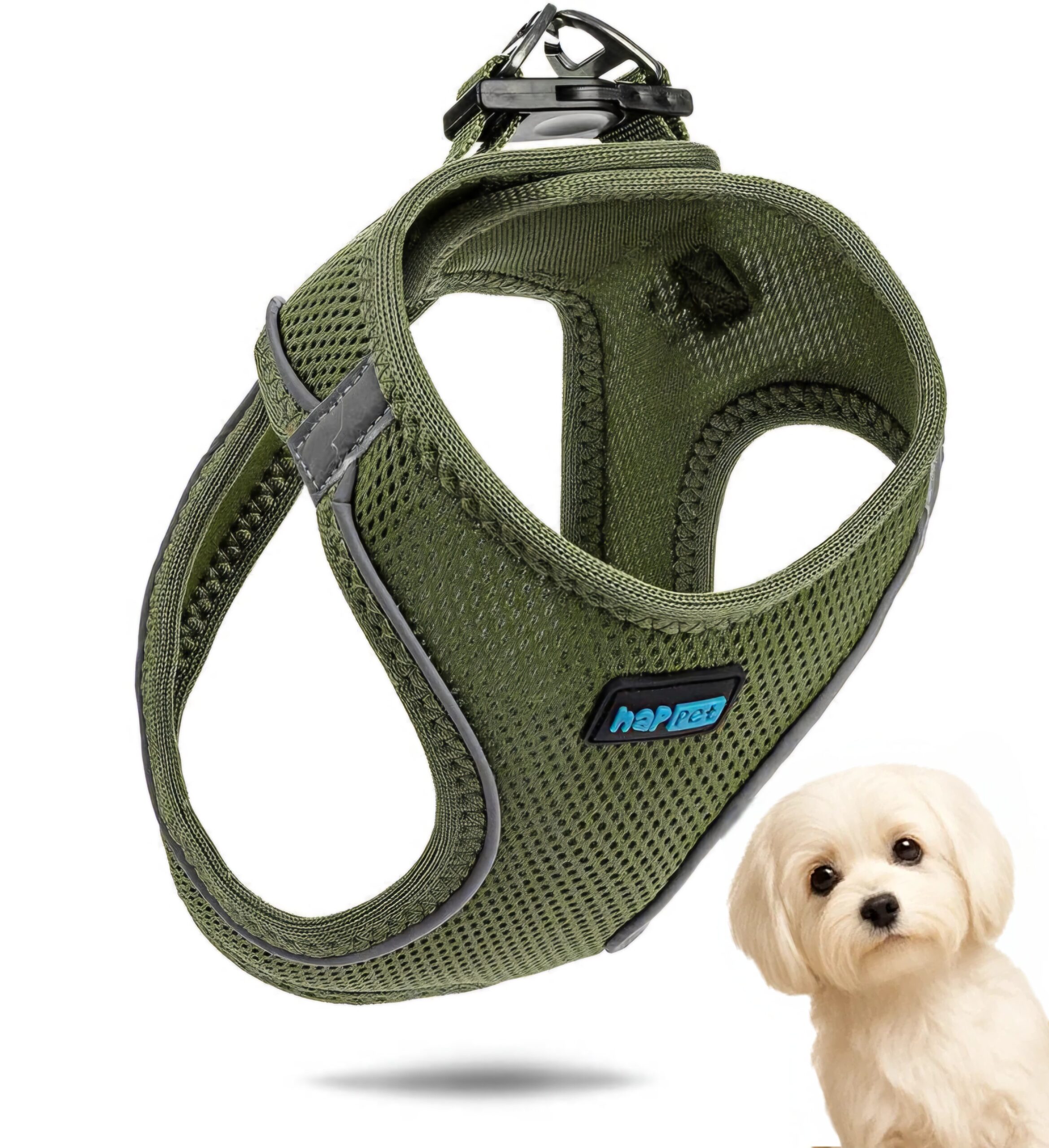 Szelki Air Comfort posiadają obręcz szyjną i piersiową z łączeniem na klatce piersiowej i plecach, zostały wykonane z solidnego, sztywnego materiału przepuszczającego powietrze, z odblaskowymi elementami. Zapinane są dwuetapowo, na plastikową klamrę oraz rzep.