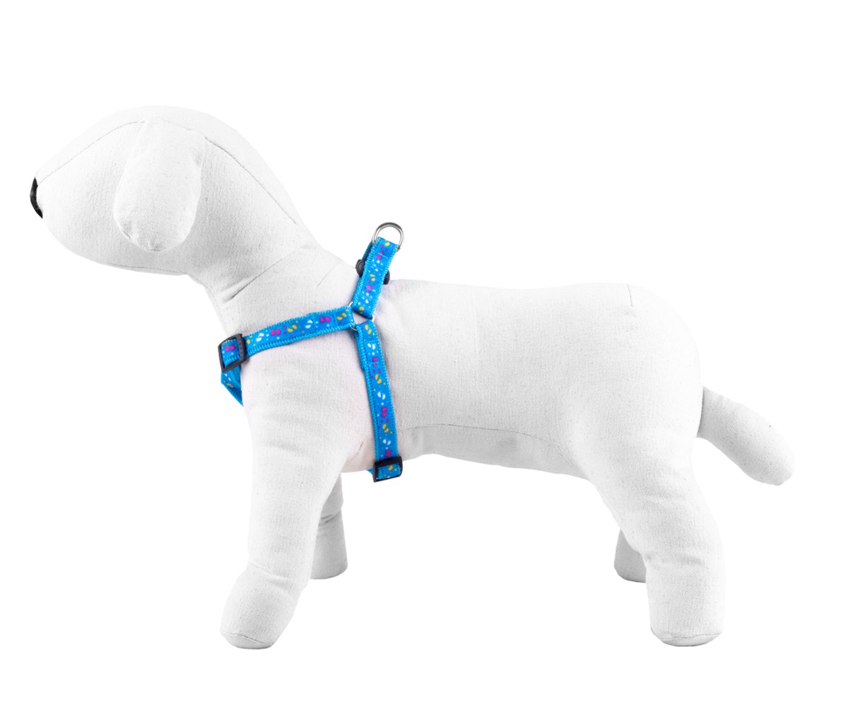 Szelki wykonane są z mocnej taśmy nylonowej z naszytą ozdobną tasiemką.