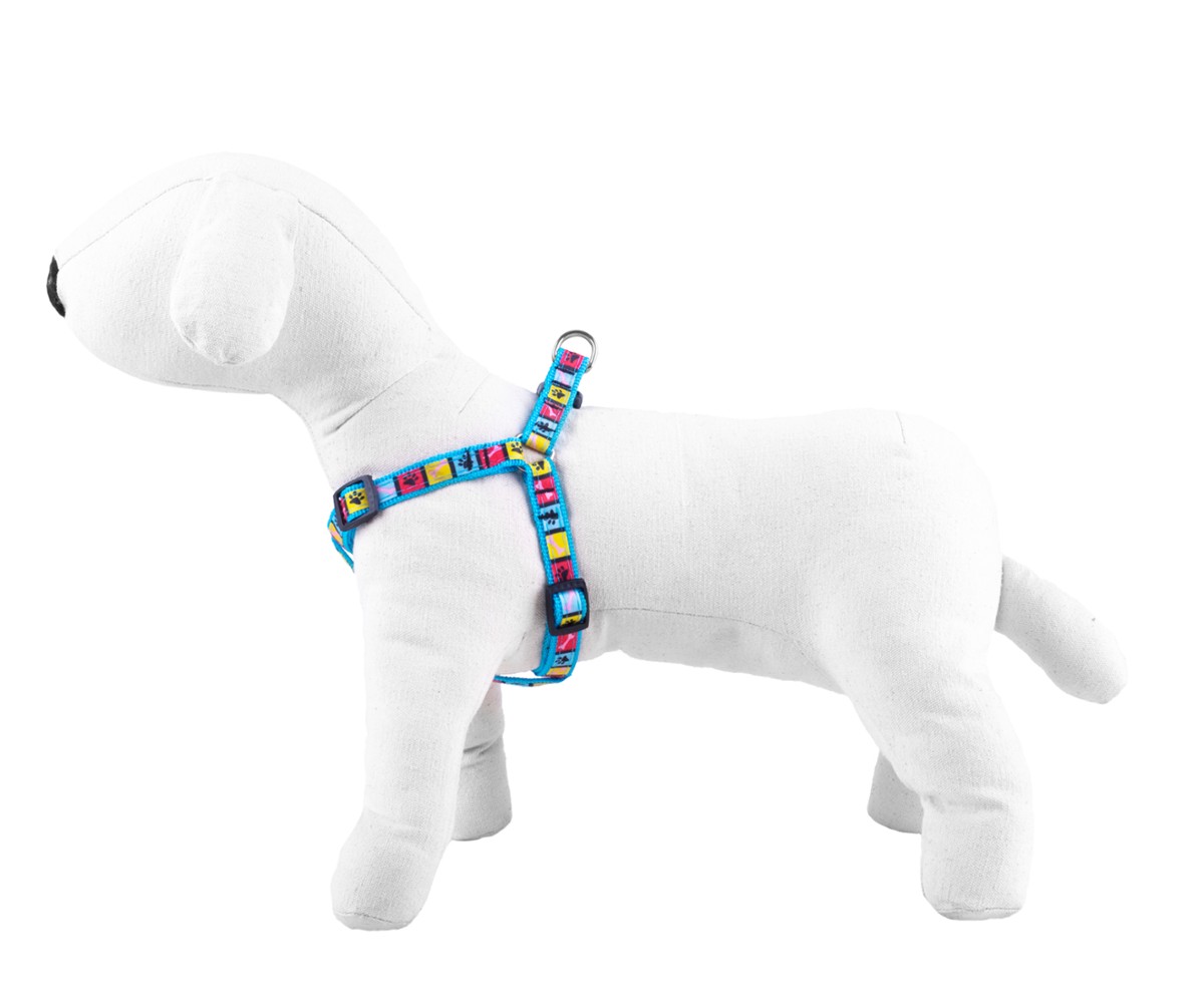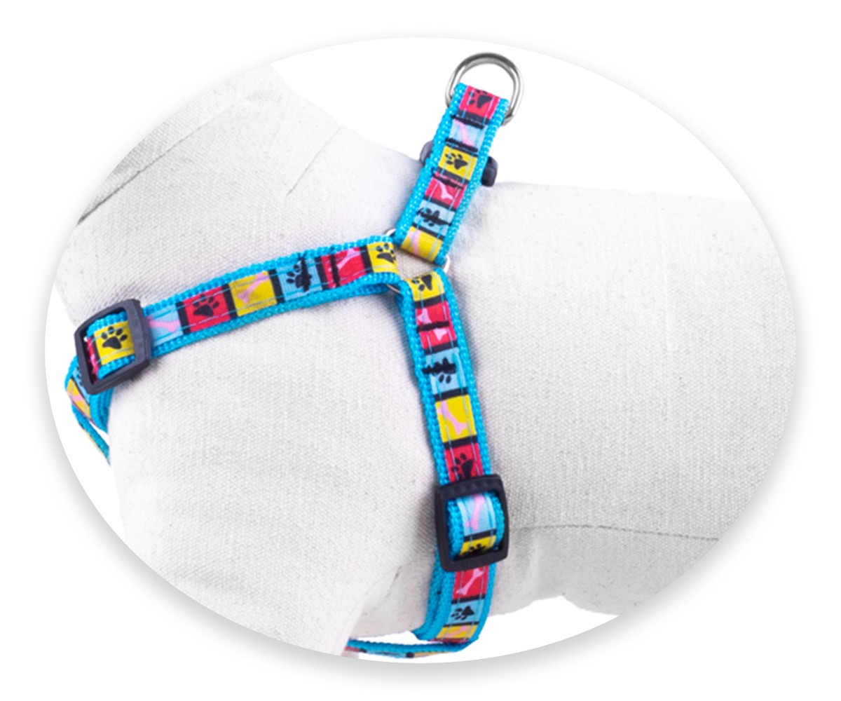 Szelki wykonane są z mocnej taśmy nylonowej z naszytą ozdobną taśmą.