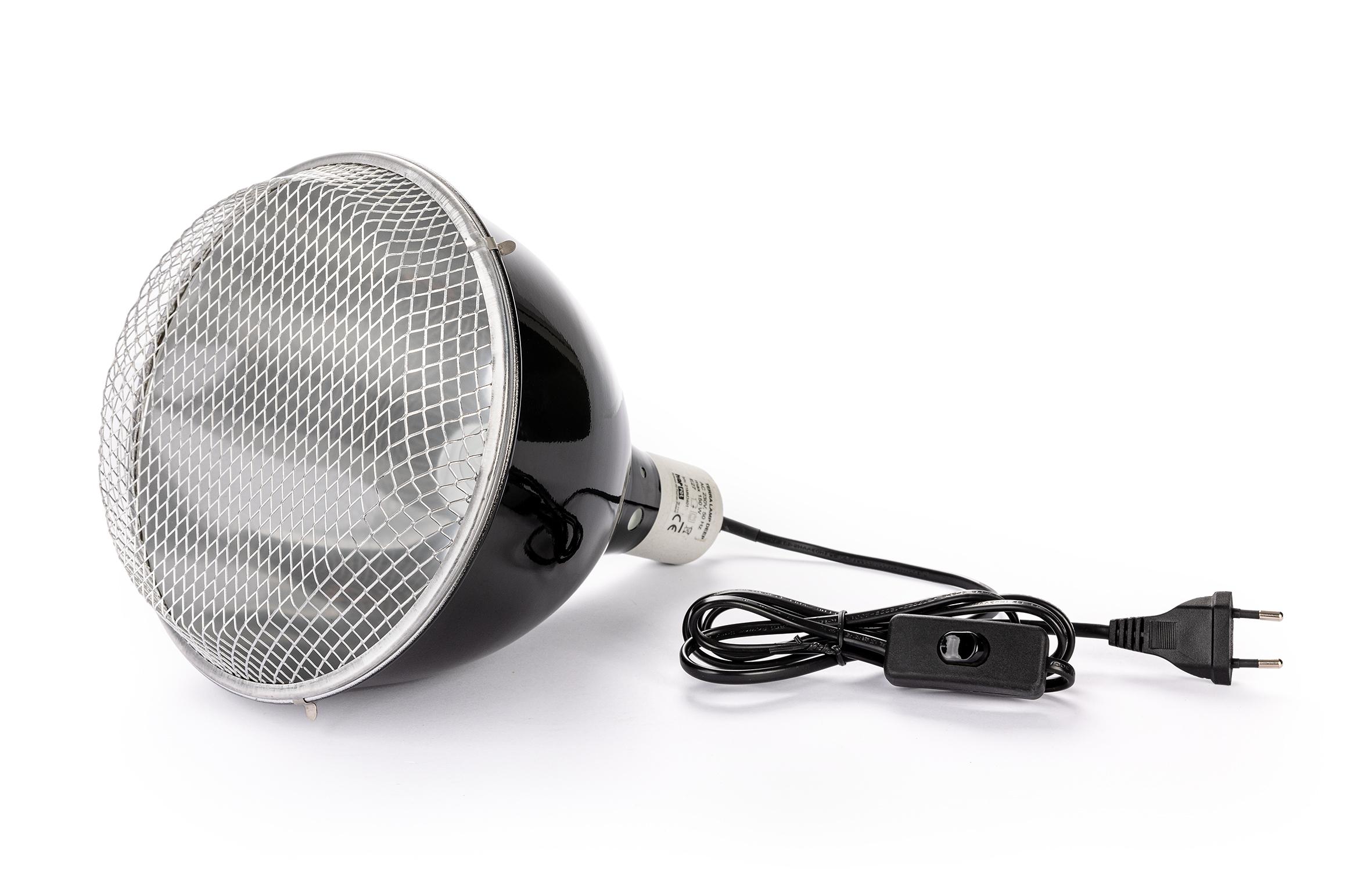 - Siatka osłaniająca żarówkę chroni zwierzę przed nadmierną bliskością źródła ciepła, co zapobiega oparzeniu się zwierząt
