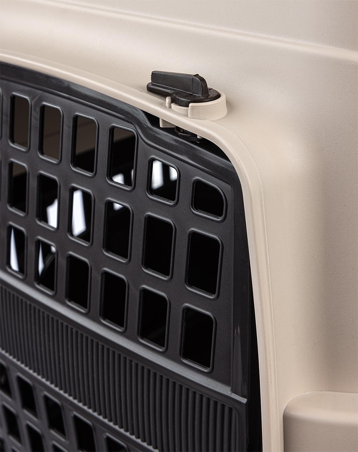 Transporter jest wygodny również w otwieraniu i zamykaniu – przednia krata zdejmuje się całkowicie, łatwo ją z powrotem zamontować. W razie potrzeby w transporterze można odpiąć również całą górę, która jest przymocowana na proste klipsy.