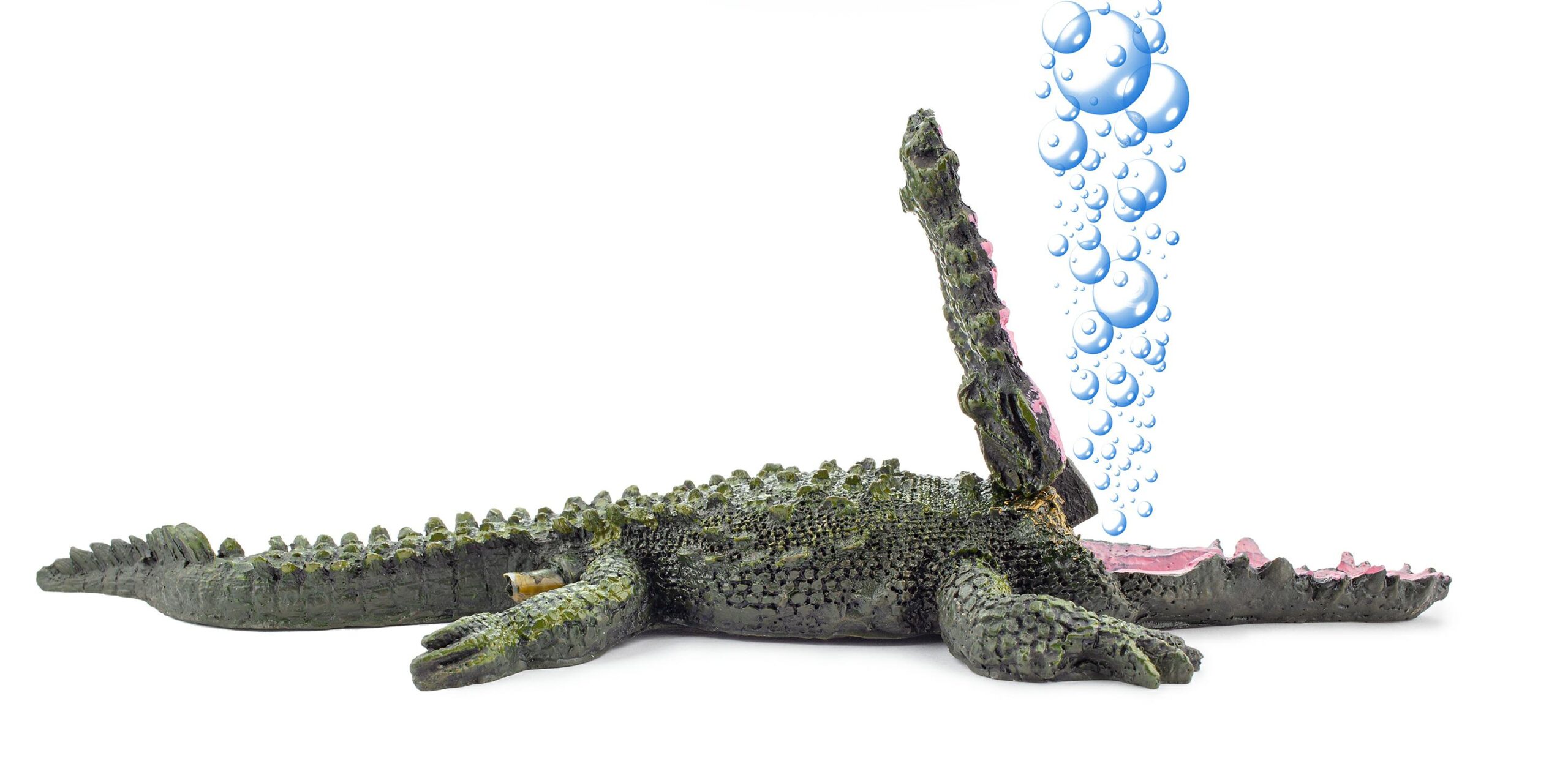 Ozdoba akwariowa w postaci krokodyla, który wypuszcza z pyska bąbelki, napowietrzając tym samym wodę w zbiorniku. Jest to nie tylko uroczy dodatek, ale również pomaga utrzymać odpowiednie warunki życia dla ryb i innych organizmów w akwarium. Dzięki tej ozdobie akwarium staje się bardziej interesujące i atrakcyjne dla obserwacji.