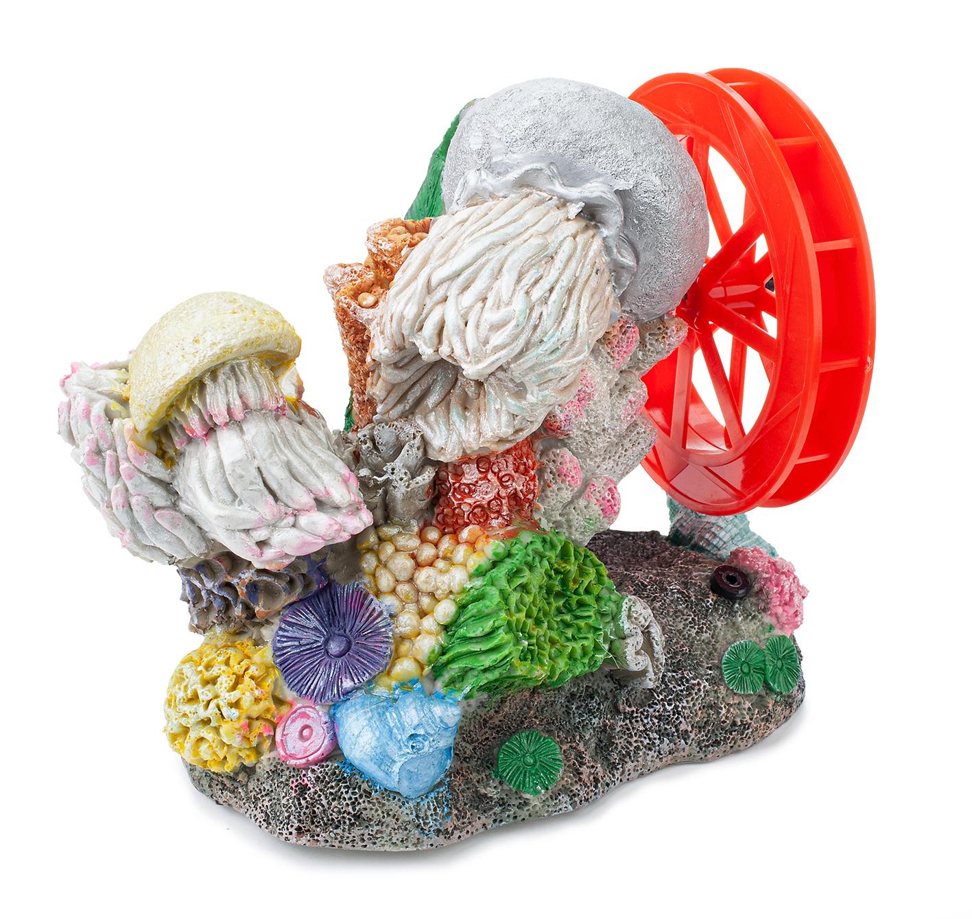 Po podłączeniu wężyka napowietrzającego ozdoba zaopatruje wodę w tlen. Dodatkowo powietrze porusza kołem tworząc ciekawy