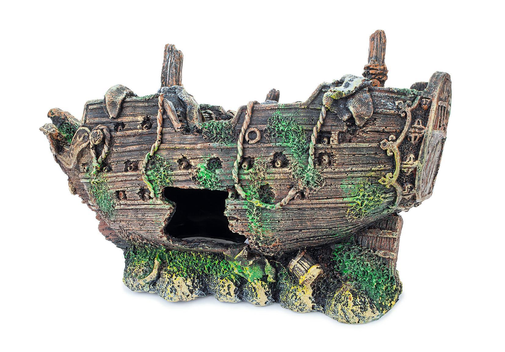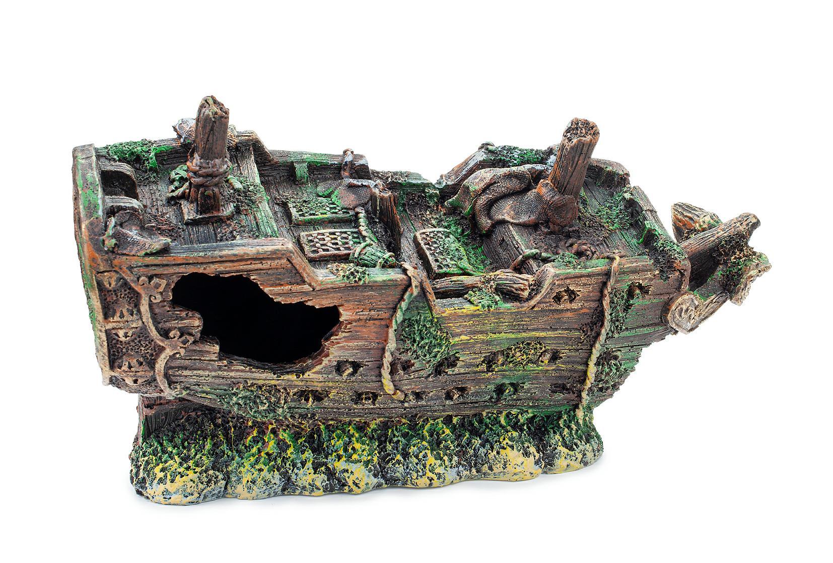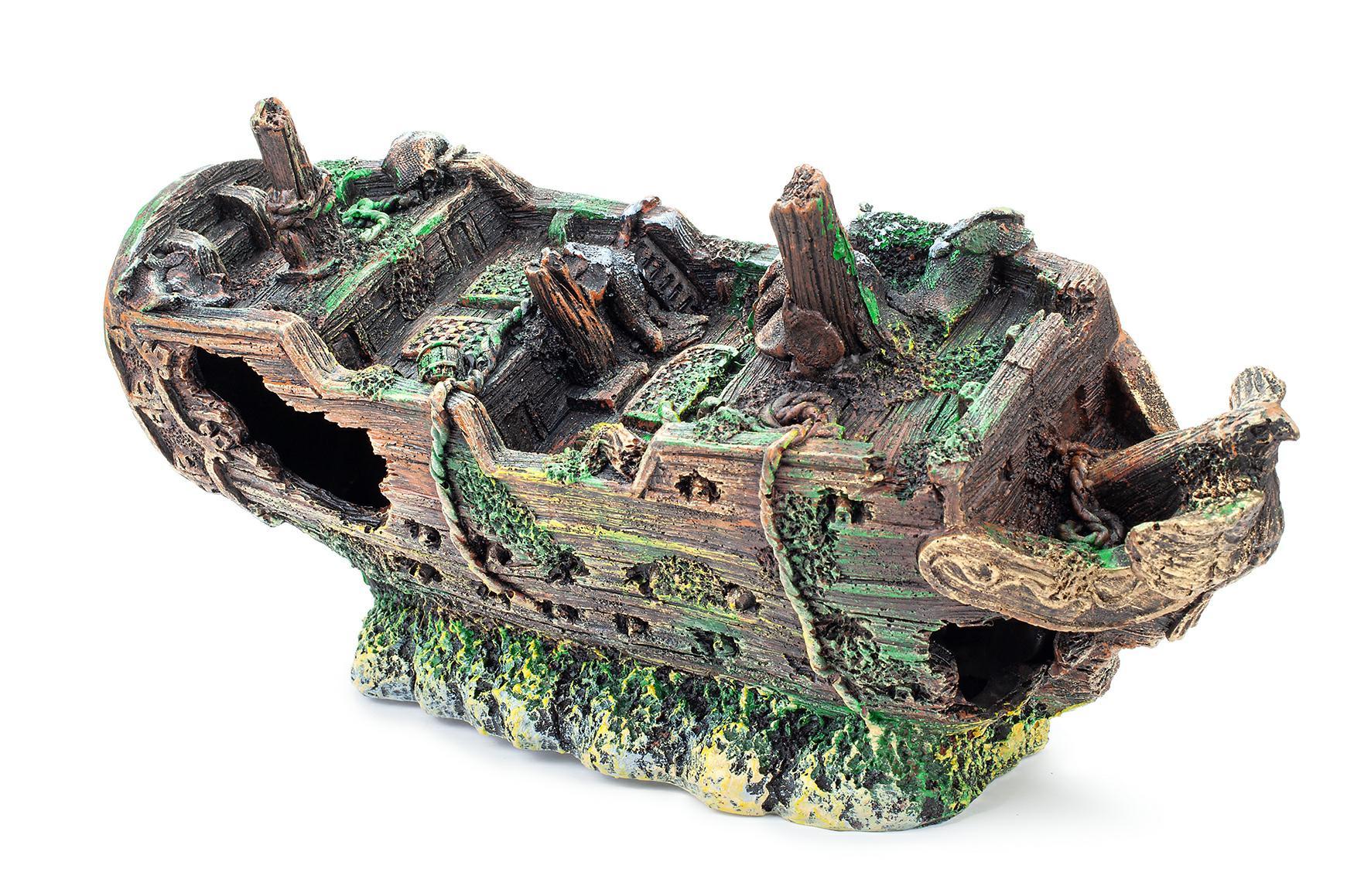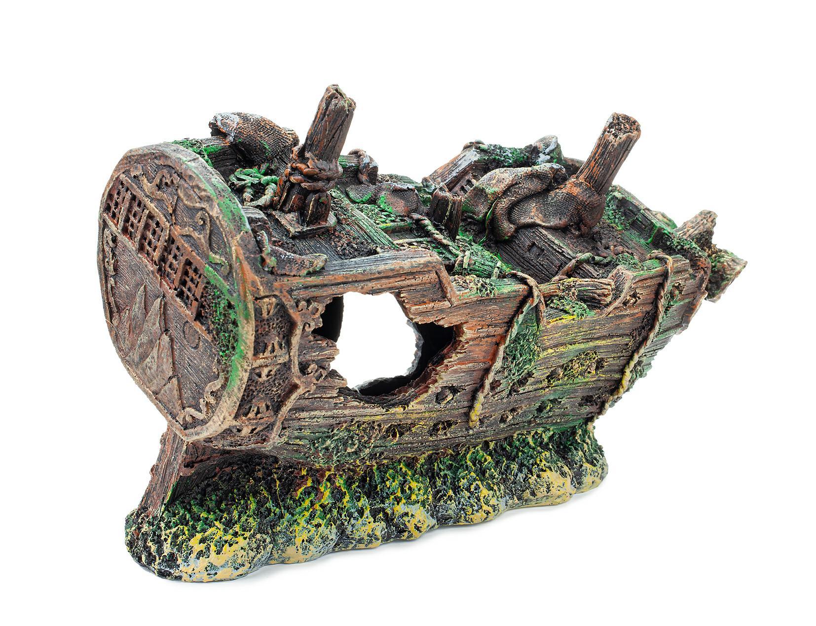 Ozdoba akwariowa wykonana z łatwo tonącego i bezpiecznego dla ryb, oraz innych zwierząt wodnych, poliestru.