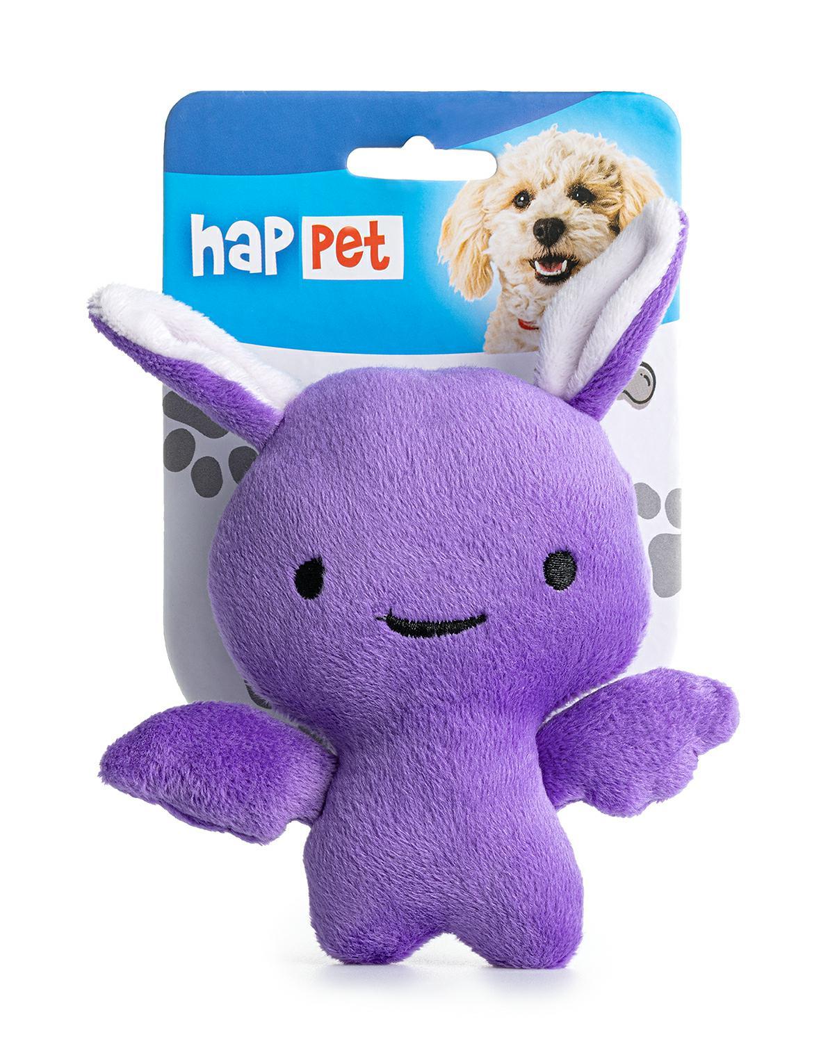 Pluszowe zabawki zostały wykonane z trwałego materiału, w pełni bezpiecznego dla zwierząt. W środku znajduje się piszczałka. Dostępne są kształty: żaba (12cm x 11cm), nietoperz, kaczka, chmurka, kość.