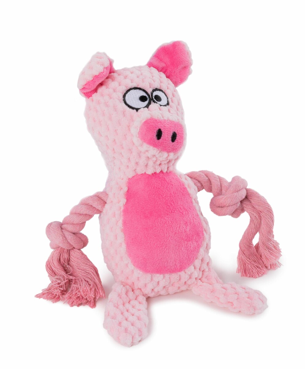 Zabawka posiada plecione sznurki w miejscach rąk, które idealnie nadają się do gryzienia i przeciągania. To doskonała opcja dla psów, które potrzebują stymulacji i kochają ruch. Delikatna, a zarazem trwała struktura materiału oraz wyraziste kolory sprawiają, że świnka przyciąga uwagę i długo pozostaje w centrum psiej uwagi.