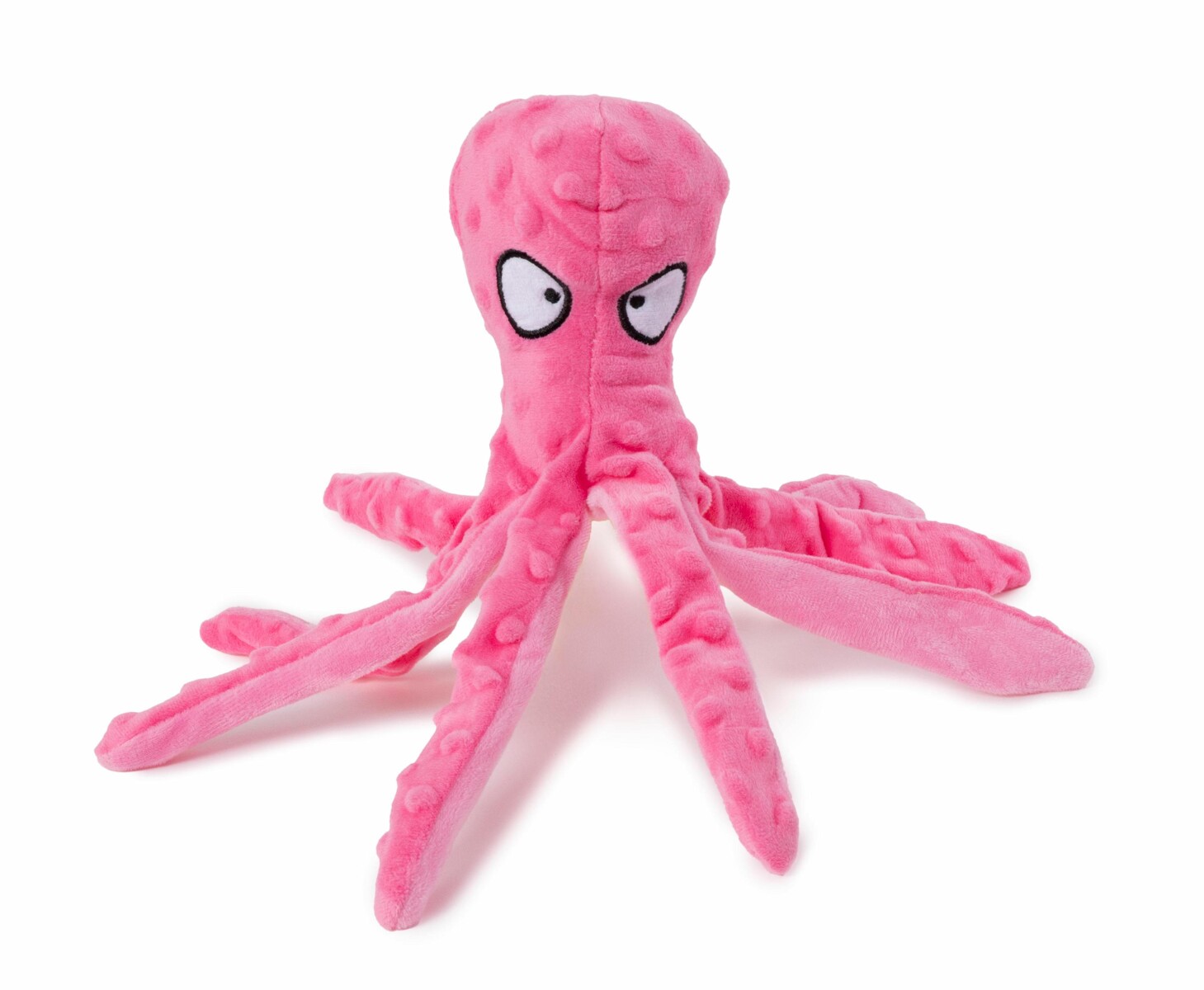 Zabawka idealnie sprawdza się zarówno podczas wspólnego aportowania, jak i samodzielnej zabawy. Lekka i elastyczna konstrukcja ułatwia chwytanie, a miękki plusz zapewnia bezpieczeństwo nawet przy intensywnym gryzieniu. Charakterystyczne, zabawne oczy dodają ośmiornicy wyjątkowego uroku.